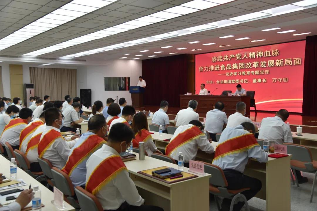 萬守朋以《賡續共產黨人精神血脈 奮力推進食品集團改革發展新局面》為題,圍繞銘記黨的奮斗歷程,矢志不渝推進黨的偉大事業;集團改革發展的生動實踐,彰顯集團系統各級黨組織的凝聚力戰斗力和廣大黨員的先鋒本色;大力弘揚中國共產黨人的擔當精神,再接再厲、攻堅克難,建功新時代等三方面,講授了黨史學習教育專題黨課,激勵廣大黨員干部職工進一步奮發有為,為集團“十四五”開好局,起好步再做新的貢獻。