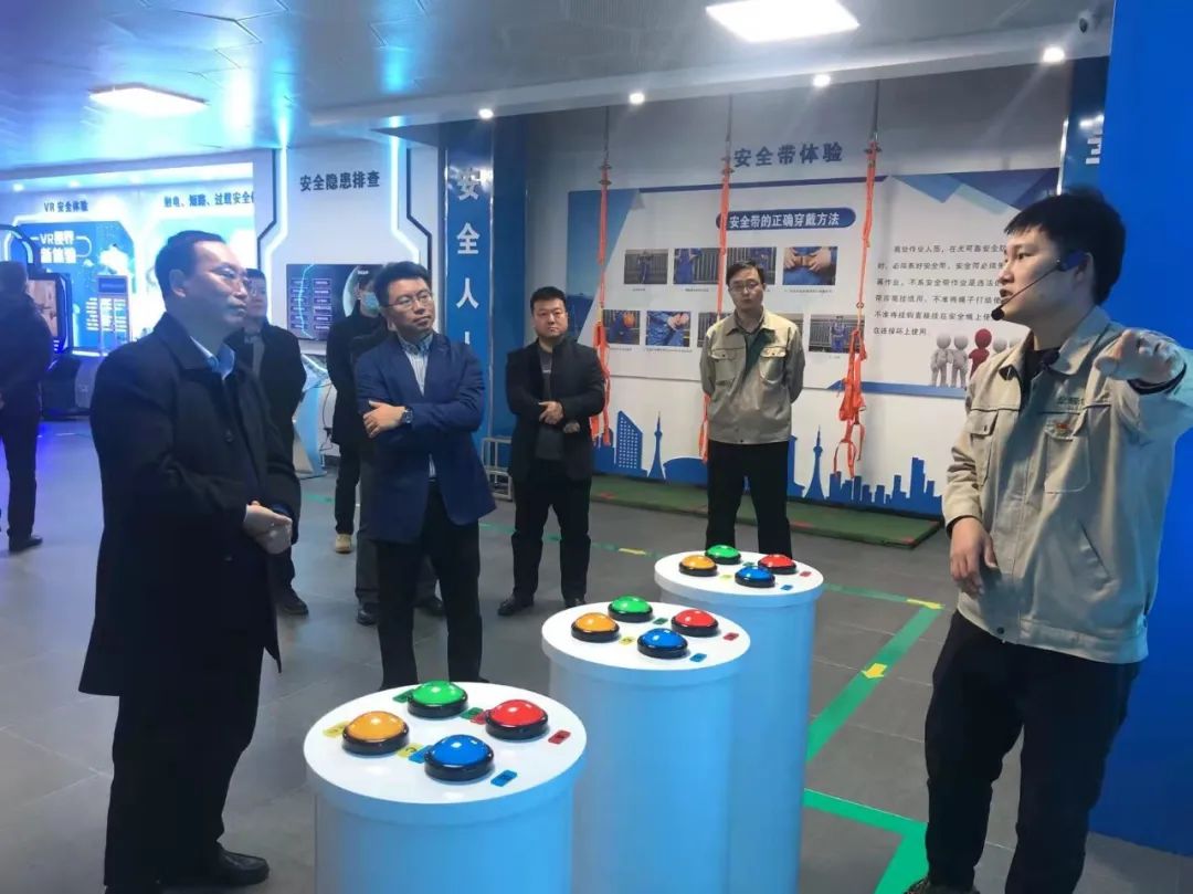 儀式結束后,首期培訓班學員進入多媒體宣教室進行消防安全知識學習。與會領導對安全培訓體驗中心各模塊的組成、體驗目的、體驗效果等逐一進行了了解,并對VR安全體驗、電力安全體驗等模塊進行了體驗,對大數據中心展現的智慧工地、電站智能運維系統等一系列模塊表示高度贊揚,并現場通過指揮調度平臺對房地產公司下屬單位進行了指揮連線。