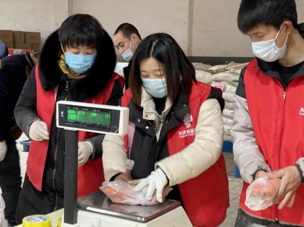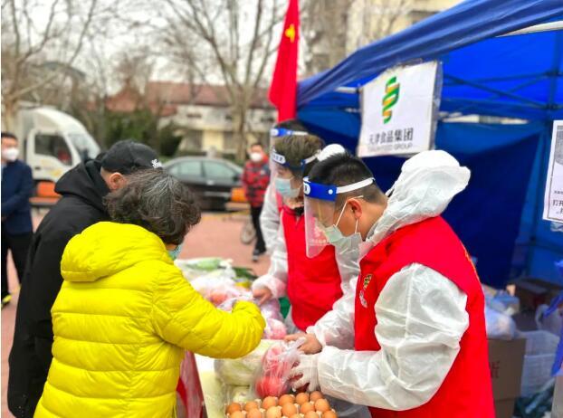 商貿公司嚴格執行生產、物流、商品全鏈條的防疫消殺流程,保證人、車、物的防疫安全。特殊時期,居民為減少外出次數,一次性采購量較大,為此,公司加大產品供應力度,凌晨5點滿載蔬菜的貨車就陸續抵達南開區分倉,7點公司員工到崗對蔬菜進行分揀、打包、稱重,9點新鮮、充足的蔬菜準時到達各保供點位。基礎民生食品一應俱全,保證各點位供應不脫銷、不斷貨,便民、貼心的服務得到了周圍居民的一致好評。“食品集團的保供點位解決了我們燃眉之急,我們這小區老年人多,給我們帶來了便捷,小伙子們不怕麻煩,耐心為我們服務,讓我們心里很踏實。”居民李大爺拎著剛買完的新鮮蔬菜安心的說道。