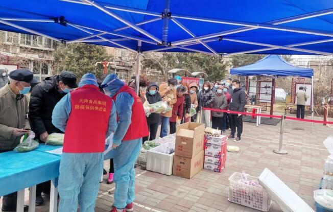 兵貴神速,分秒必爭。系統百余名保供突擊隊員僅2個小時火速集結,奔赴42個集團防疫保供點位,為百姓提供便捷服務,消除恐慌心理,成為穩人心、穩民生的“守護者”。目前,各保供點位生鮮商品貨源充足、價格穩定,平價的大白菜、茄子、西紅柿、青椒等30噸蔬菜、10噸廣源散雞蛋以及利達面粉、黃莊洼米、海河牛奶、月季花花生油等20余種民生食品,有效引導和穩定市場價格預期,受到百姓一致認可。