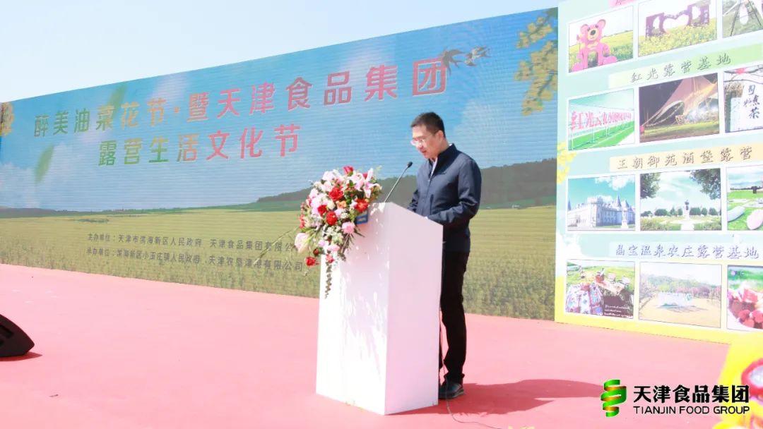 4月26日上午,天津食品集團露營生活文化節(jié)暨“醉美”油菜花節(jié)在津港農莊盛大開幕。集團黨委副書記、工會主席王增春出席開幕式并致辭。