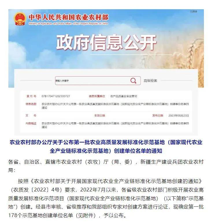 近日,農業農村部發布了《農業農村部辦公廳關于公布第一批農業高質量發展標準化示范基地(國家現代農業全產業鏈標準化示范基地)創建單位名單的通知》,嘉立荷牧業公司榜上有名。