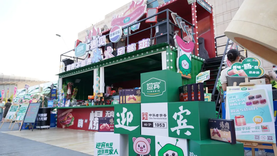 作為市集中的另一大亮點,以紅綠撞色為主體思路,采用現(xiàn)代集裝箱風格,頂部設置“烤腸”造型,與本次市集迎賓的主打新品“爆肉脆烤腸系列”前后呼應,4種口味滿足大眾味蕾。歌手每日演出精彩不停,讓消費者在音樂中享受美食,游戲區(qū)和休閑區(qū)等多個打卡點吸引消費者眼球。此外,迎賓與百事攜手聯(lián)名打造了跨界不越界的冰火效果,提高了迎賓的品牌知名度,迎賓與百事將以此為契機,穩(wěn)步推進深度合作。